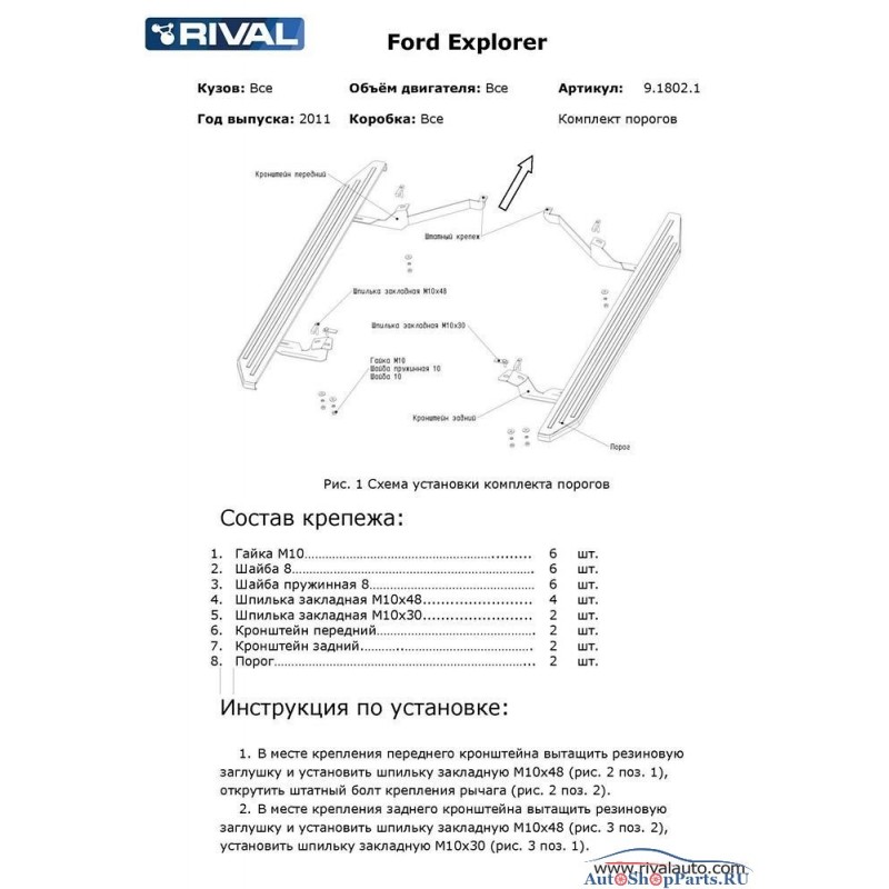 Пороги Rival Bmw-Style Ford Explorer 2011-2015-, круг 193 см.