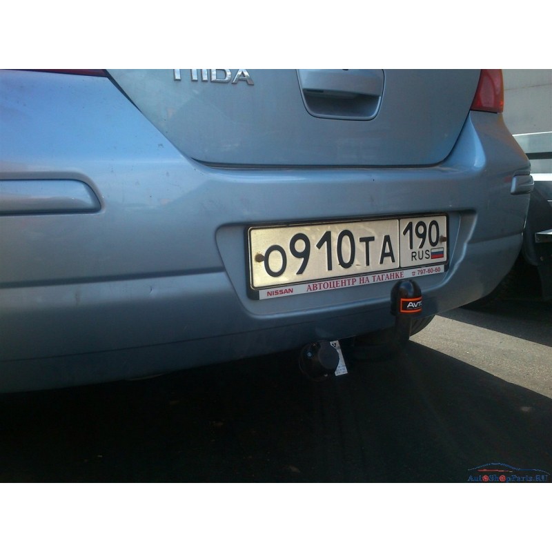 Артикул: NS23 Марка авто: Nissan Модель авто: Tiida Год выпуска авто: 2007г.-по н.в. Тип кузова авто: хэтчбек/седан Тип шара: условно-съемный на 2-х болтах Максимальная буксируемая масса: 1000 кг Вертикальная нагрузка на шар: 50 кг Делать вырез бампера: да.
