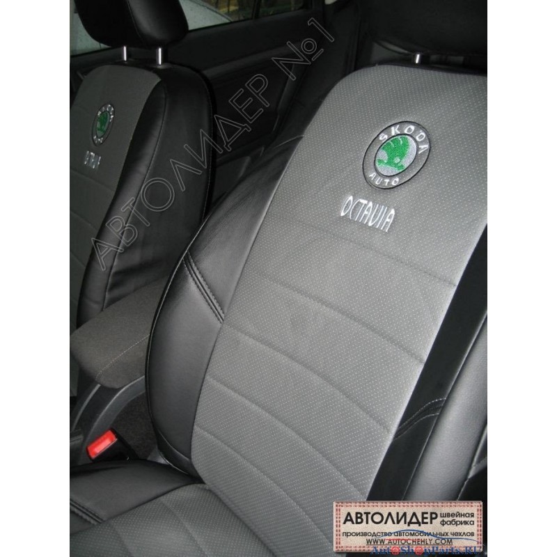 Модельные чехлы на Skoda Octavia с 2008-2012г. А-5 Elegance. седан-хэтчбек лекал: Задние спинка и сидение 40 на 60. Передний подлокотник, 2 надкрыльника, 5-подголовников середина: Серая с перфорацией боковины: Черные спинка: Чёрная экокожа.