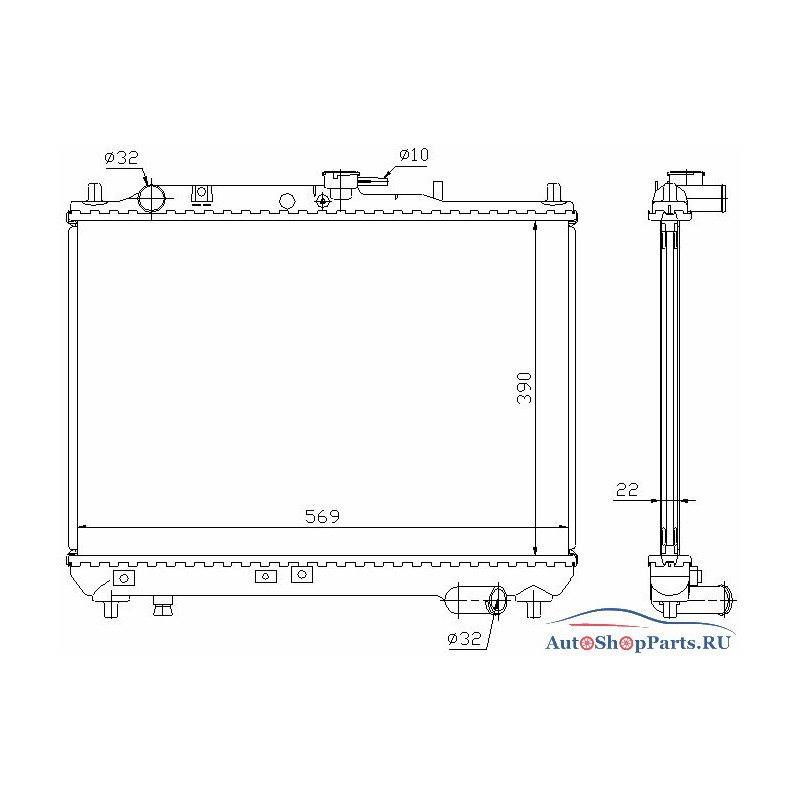 Предлагаем к продаже: радиатор охлаждения двигателя 390*569*22 на Mazda 323 (1989-1994).