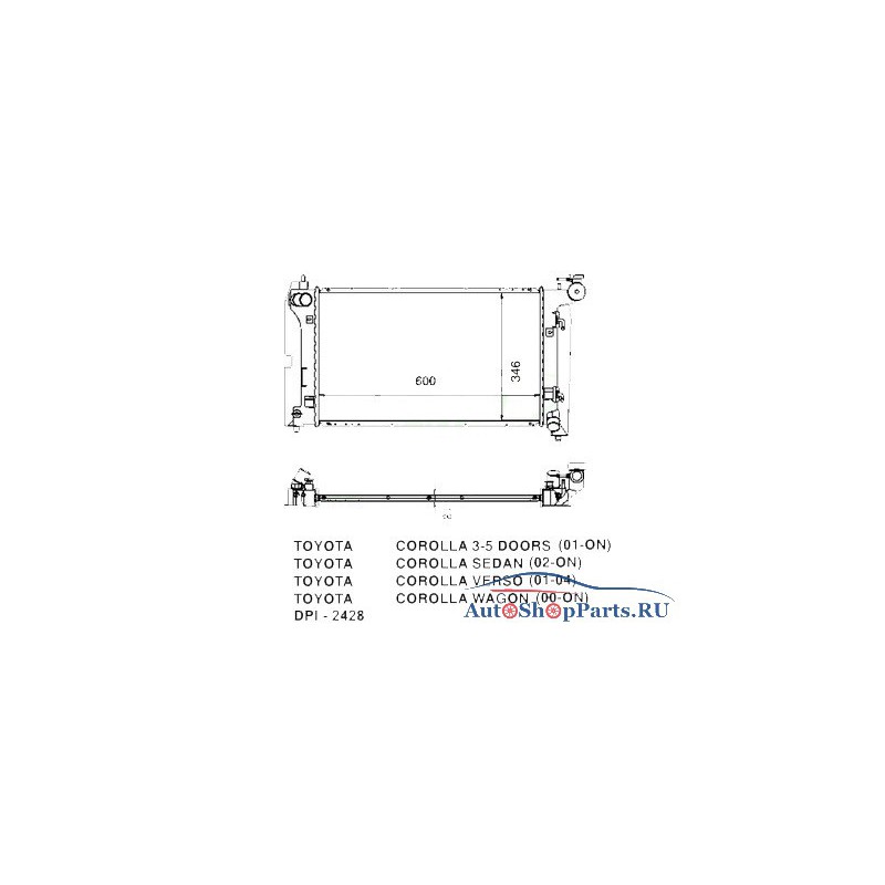 Предлагаем к продаже: радиатор охлаждения двигателя 1.3/1.4/1.6/1.8 aкпп на Toyota Corolla DE120 / ZE120 седан / универсал (2002-2007).